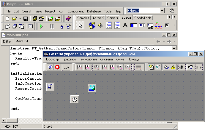В якості середовища розробки SCADA-системи обрана IDE Borland Delphi 7. Це дає змогу не тільки швидко створювати додатки, але й завдяки розробленій нами бібліотеці візуальних елементів для SCADA, звести програмування до мінімуму.